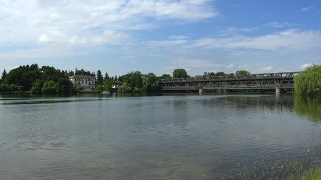 Sesto Calende (VA), Italy - September 15, 2016: The Ticino river view from the riverside, Lombardy, Piedmont, Italy.