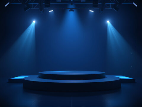 Spotlights illuminate empty stage with dark background ,made with Generative AI