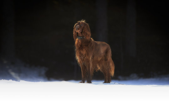 Irish red setter portrait on green grass background, outdoors, horizontal