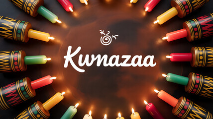 Kwanzaa celebration with colorful candles arranged in a circle, symbolizing the seven principles.