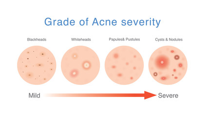 Grade of acne severity. Medical diagram about skin problems from different types acne.