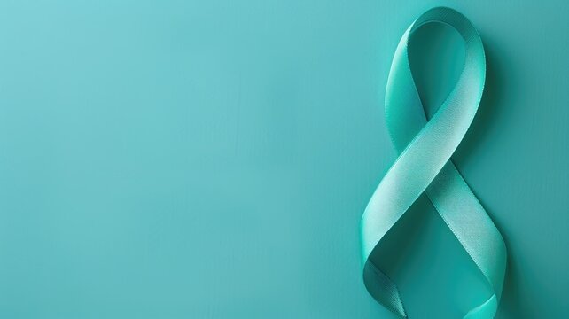Teal ribbon on textured teal background, symbolizing awareness for specific causes