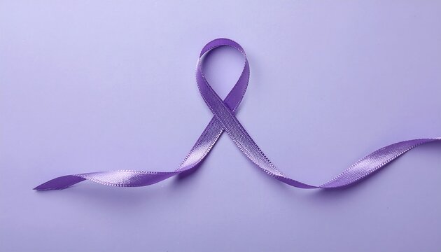 Elegant purple ribbon symbolizing awareness on a solid purple background