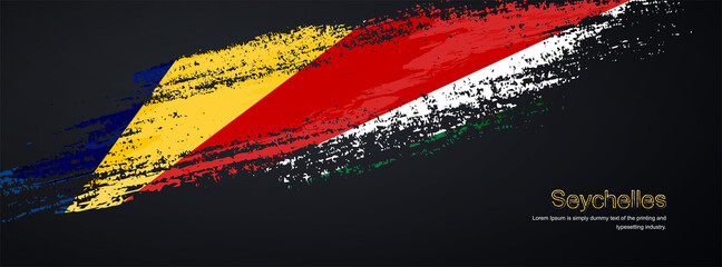 Grunge brush of Seychelles flag on shiny black background. Abstract glitter sparkle brush paint vector illustration