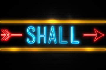 Shall  - fluorescent Neon Sign on brickwall Front view