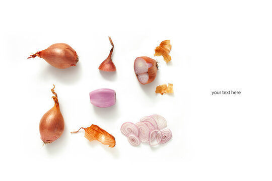 Fresh shallot on white background, healthy vegetable, organic produce, copy space