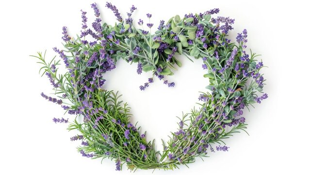 Heart shaped lavender wreath on white background