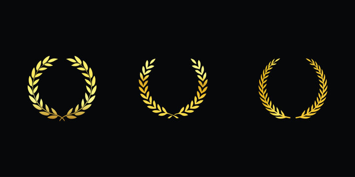 Black and White Laurel wreath vector art collection Golden with Black Background