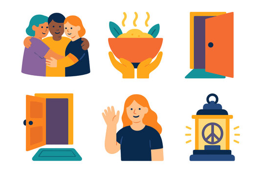 Family Meal Logos. Sharing a family meal. Icon set. Set Logo of sharing a family meal: cooking pot shared between hands. harmonious logo variations of the same