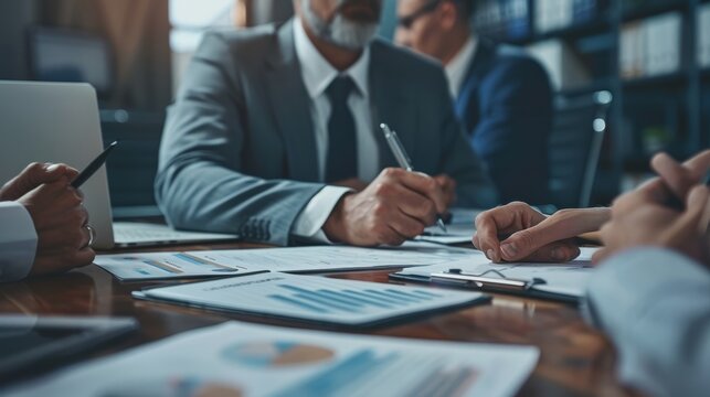 business formal meeting conference discussion with coworker shareholder or client concentrate private ideas data report analysis businesspeople working find solution together in office,ai generate