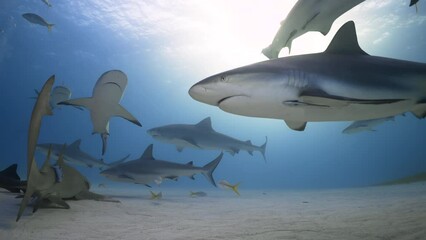 4K Shark Silhouettes Passing Overhead. Realistic CGI animation.