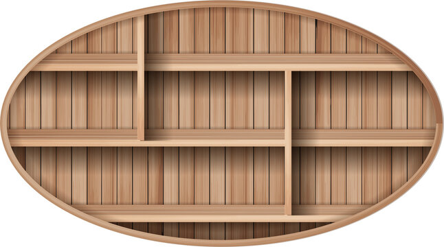 Wooden shelf. Product store. Exhibition object background.