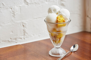 Orange sherbet in a waffle basket
