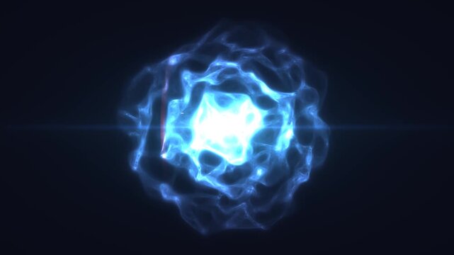 Abstract glowing blue energy sphere with fluid light waves, radiating futuristic power and cosmic motion