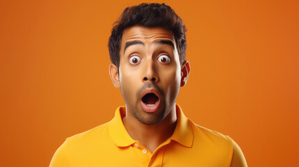 Indian male shocking face on yellow background