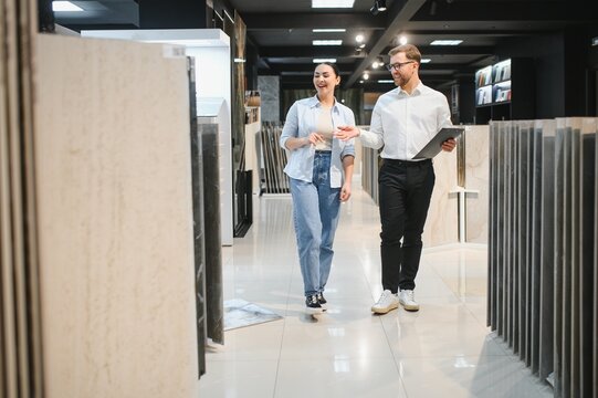 Friendly female shop assistant helping customer in clothing store. Concept of retail service, customer assistance, shopping experience, friendly staff, clothing store interaction.