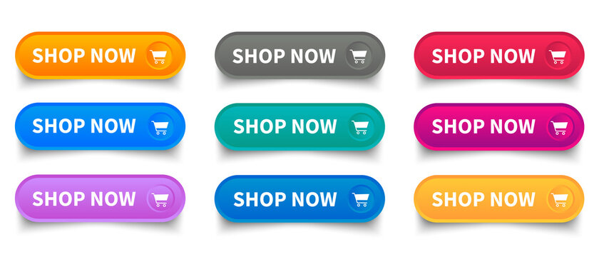 Shop now. Set of button shop now or buy now. Modern collection for web site. Vector illustration.