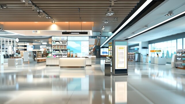 Sign and Billboard Mockup at duty free shop in departure terminal to promote your business or organization in a unique and eyecatching way : Generative AI