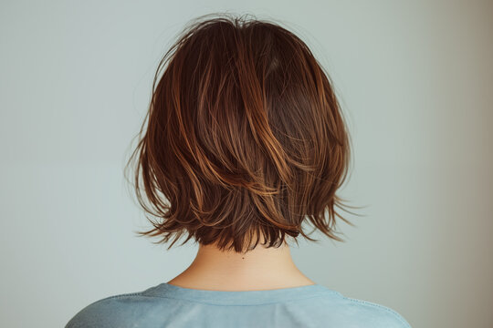 Portrait of a beautiful blonde girl with a short haircut. Gray background.
