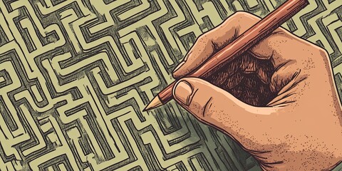 Hand draw a shorten straight way to go through the complication of maze game, easier process, simplify in communication, or fast solution concept