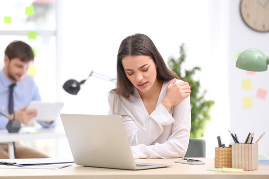 Shoulder Injuries, Close up Young woman pain shoulder , health care concept