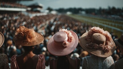 Woman in pink bikini and hawaiian lei raises hand and shouts on busy street; greeting energy celebration.