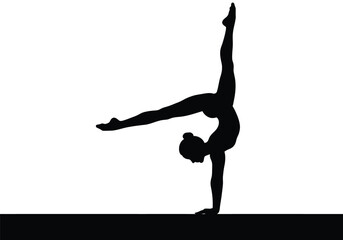 Gymnastics cartwheel silhouette. This image shows a black silhouette of a gymnast performing a cartwheel, showcasing balance, flexibility, and acrobatic movement. Vector clipart illustration design.