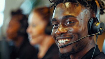 Customer support team wearing headsets providing service
