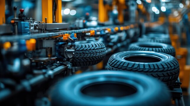 A tire manufacturing line showcasing tires in production.