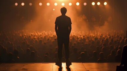 Comedian actor Performing on Stage in Front of Audience During Live Show, Generative AI image