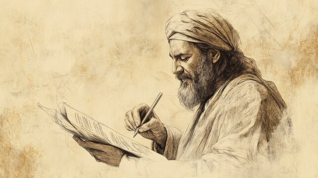 Debtor s Face Filled with Relief and Appreciation as He Writes a New Bill for Fifty Measures of Oil After the Shrewd Manager Reduces His Debt in the Biblical Parable