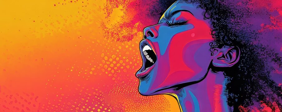 Afro woman screaming in pop art style, created as a colorful and dynamic artwork, Generative AI