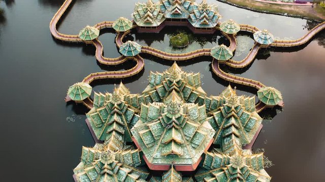 Ancient City, Muang Boran, aerial footage, in Bangkok, Thailand