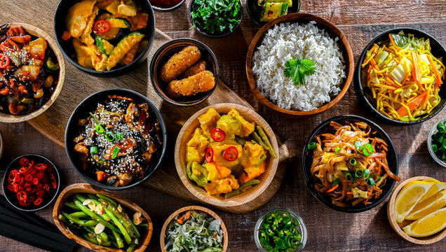 Bird's eye view of traditional sichuan hot pot served on rustic wood. Focus: chinese cuisine, hot pot experience, sichuan favorites, food photography