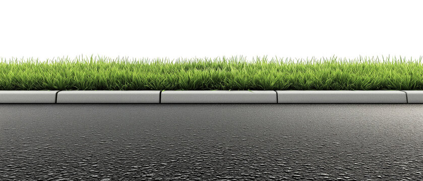 House fence consisting by a long concrete rectangle block wall and a hedge above. Cement sidewalk and asphalt street in front. Background for copy space