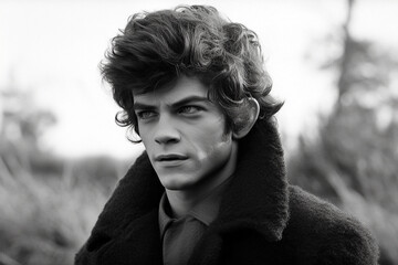 Cool retro teenager with thick hair and sideburns. Tough kid from the 1950s. generative AI