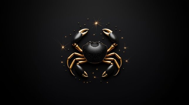 Celestial Crab, A powerful depiction of the Cancer zodiac sign with a golden crab encircled by stars, highlighting its cosmic significance.