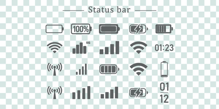 Battery, signal, wifi icons, simple design. Status bar icon phone signal wifi battery icon vector illustration on transparent background