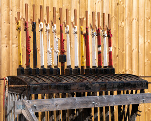 28 May 2023. Dufftown,Moray,Scotland. This is Mechanical railway signalling installation and lever frame at Dufftown Railway Station.
