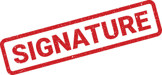 Red signature stamp with grunge texture and rounded rectangular frame for documents