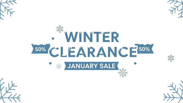 Eye catching graphic banner design announcing a significant fifty percent off winter clearance event during the mid-January seasonal sale promotion