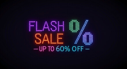 Exciting flash sale announcement with colorful lights offering significant discounts on various products