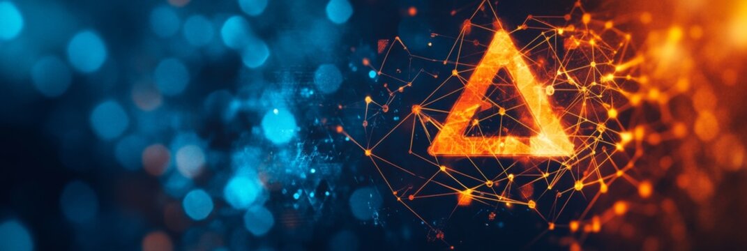 Abstract Orange Road Sign Over Connected Dots and Lines on a Blurry Glowing Blue Red Gradient