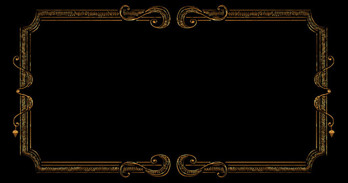 Silent film style narration card, gold on black, retro, vintage, frame, border, blank
