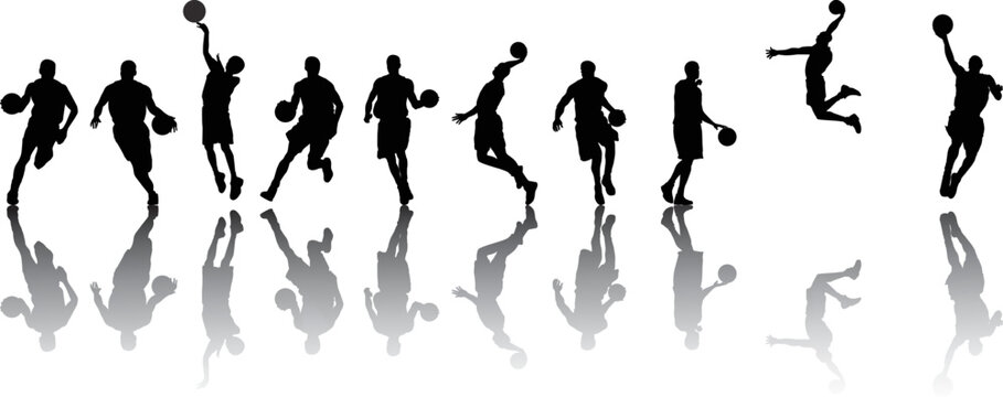 Basketball Player silhouette set vector illustration isolated On Transparent Background