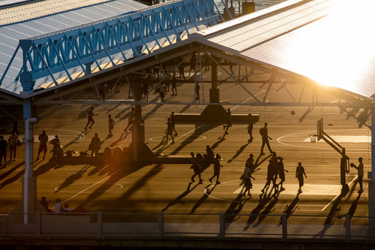 Set of Dynamic Silhouette of Female Basketball Players in Action