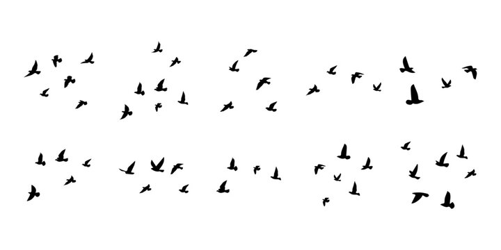 Flying Birds Group Vector Silhouette, vector set