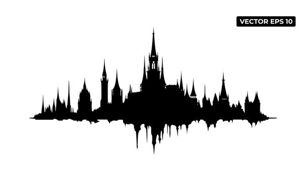 Collection of black and white silhouette wave borders and decorative design elements for nautical and ocean themes