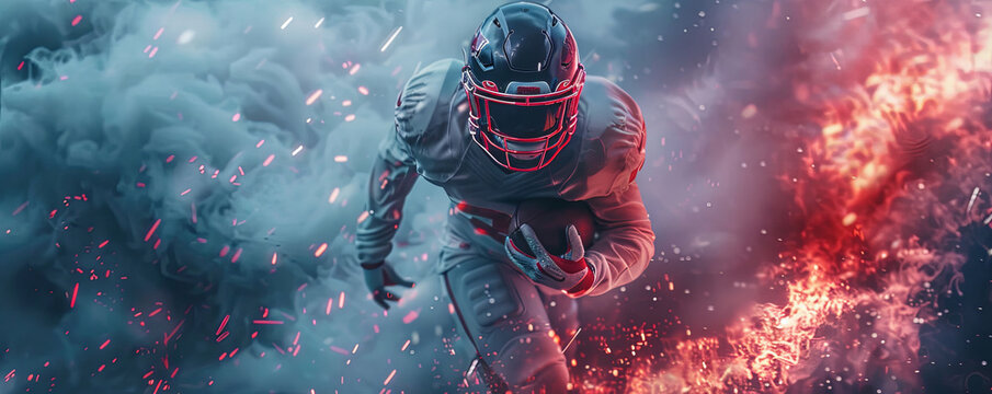 American Football Player in Red Neon Light - Silhouette of a determined football player, number 13, illuminated by a vibrant red neon light, creating a dramatic and powerful