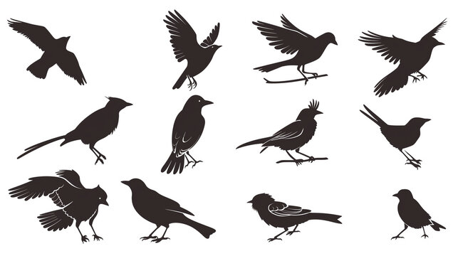 Black bird silhouette collection. Set of black bird silhouette isolated